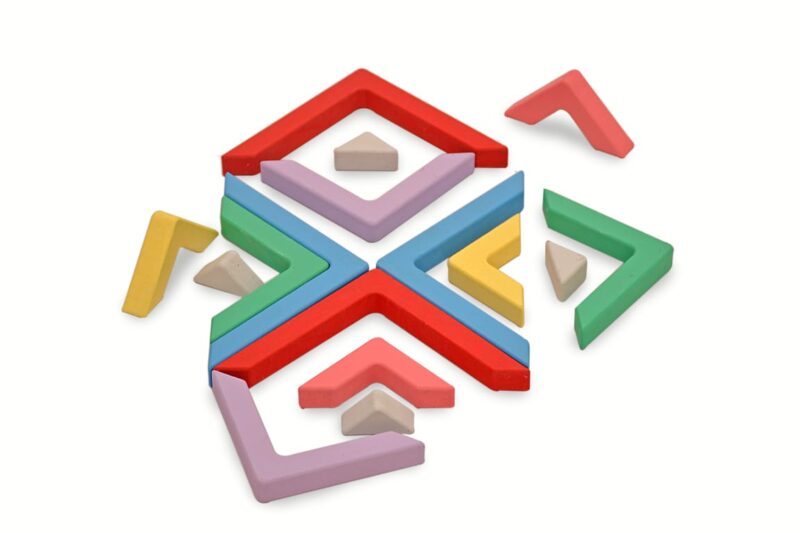 Los bloques ayudan a los niños a desarrollar sus destrezas motoras (fina y gruesas). Hace que se vuelvan conscientes del espacio y de su relación con otros objetos. El juego de Bloques es uno de los juguetes que mas motiva la creatividad