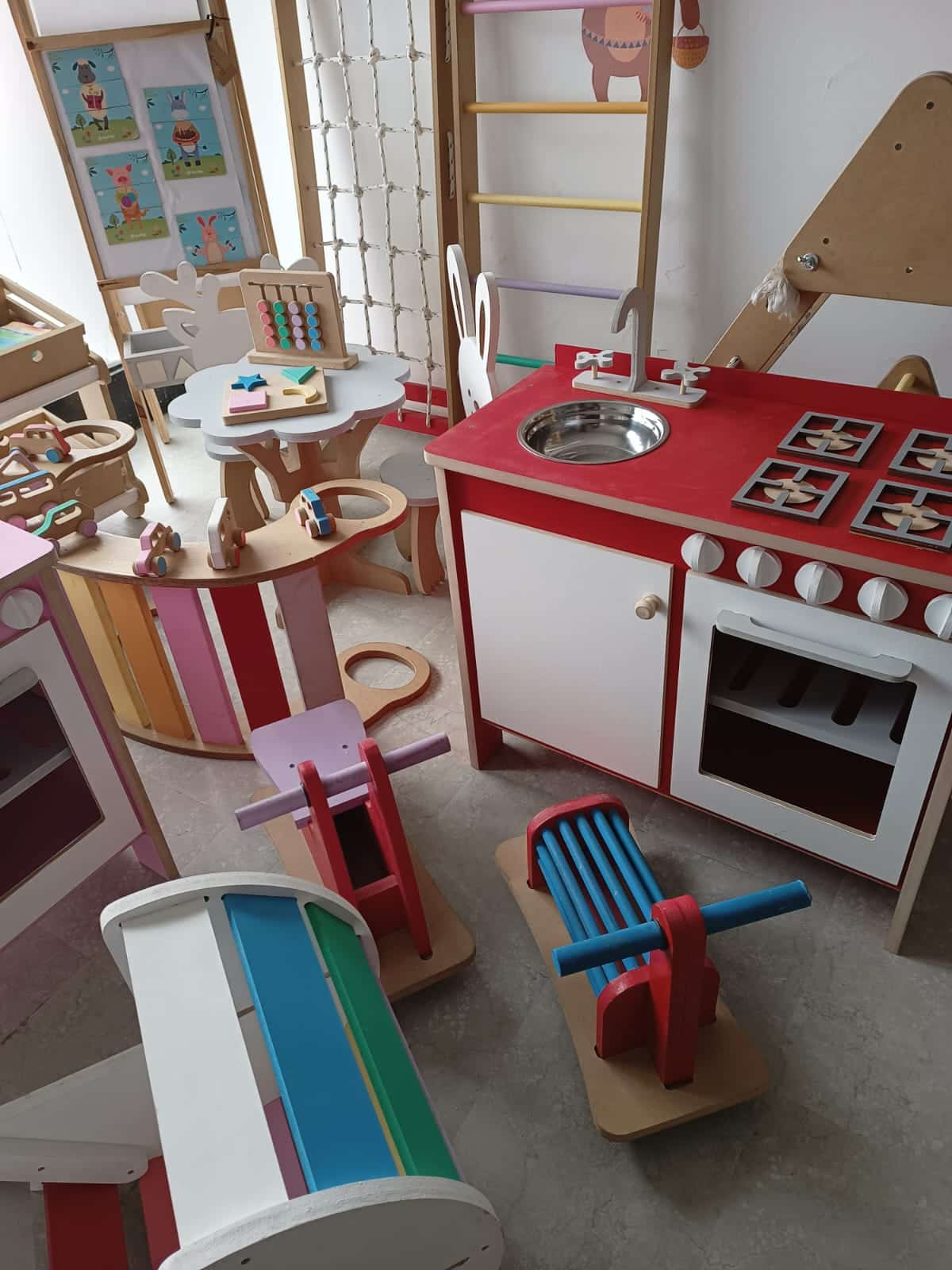 Al jugar con una cocinita de madera de juguete, los niños pueden desarrollar sus habilidades motoras finas y gruesas. Al preparar los alimentos, pueden mejorar su coordinación ojo-mano y su destreza manual.