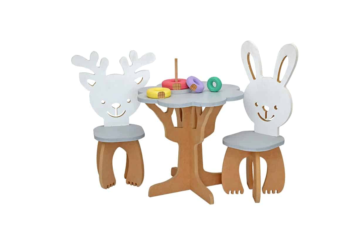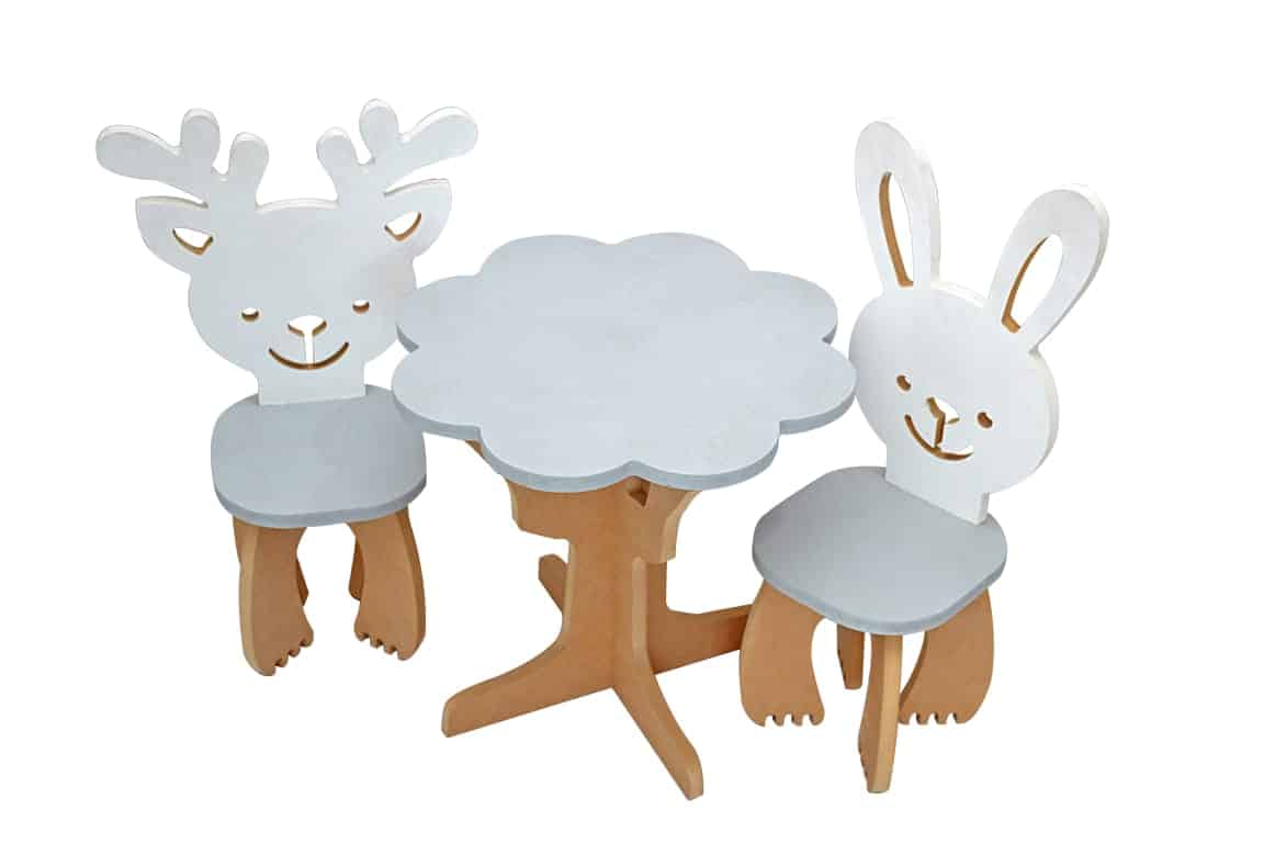 Juego de mesita y sillitas para que l#s peques puedan crear su espacio de juego.