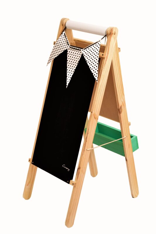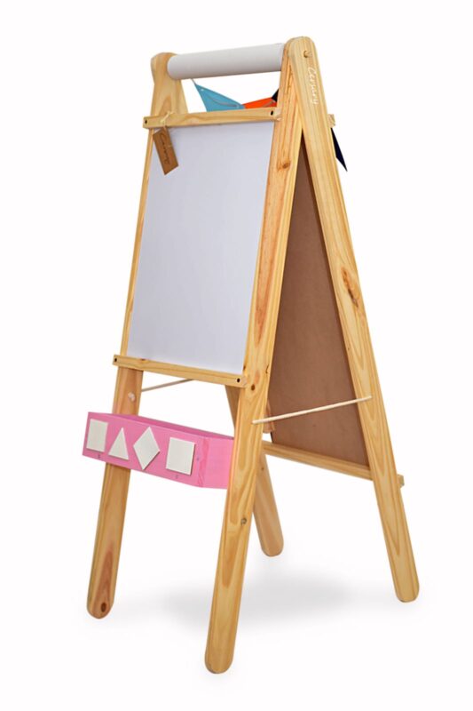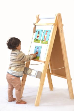 Cuenta con una pizarra blanca donde se puede escribir con marcadores, jugar con imanes o bien deslizar sobre ella el rollo de papel y dibujar con lápices, marcadores, temperas o lo que quieras. También cuenta con un pizarrón de generosas dimensiones donde les niñes podrán expresarse libremente con tizas de colores y vos no tendrás que preocuparte por tus paredes. Esta versatilidad creativa significa que tus hijos nunca se aburrirán y siempre tendrán nuevas ideas para explorar.